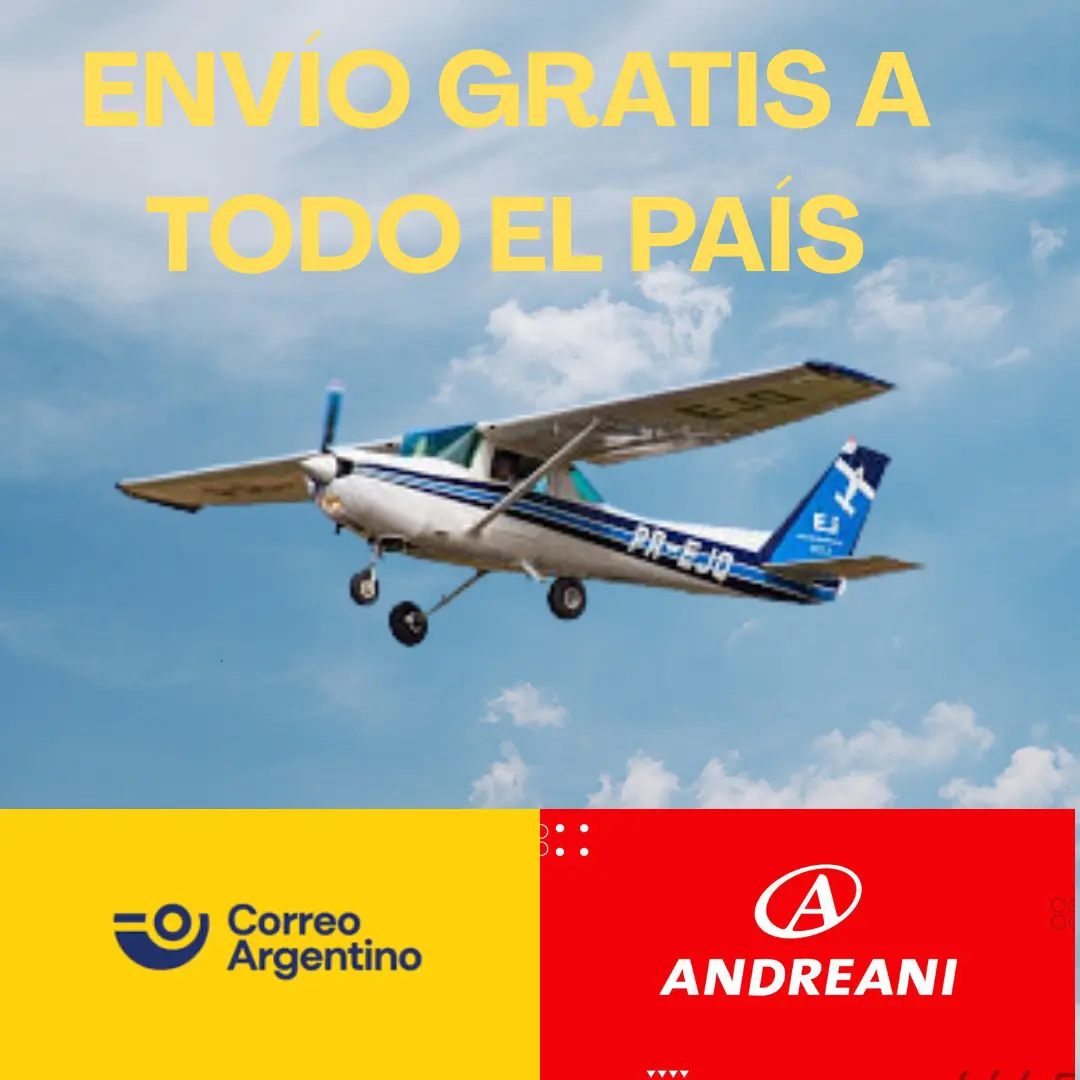 Trabajamos con Andreani y Correo Argentino, dos de las empresas de logística más reconocidas y confiables del país, para asegurarte una entrega segura, rápida y con seguimiento.