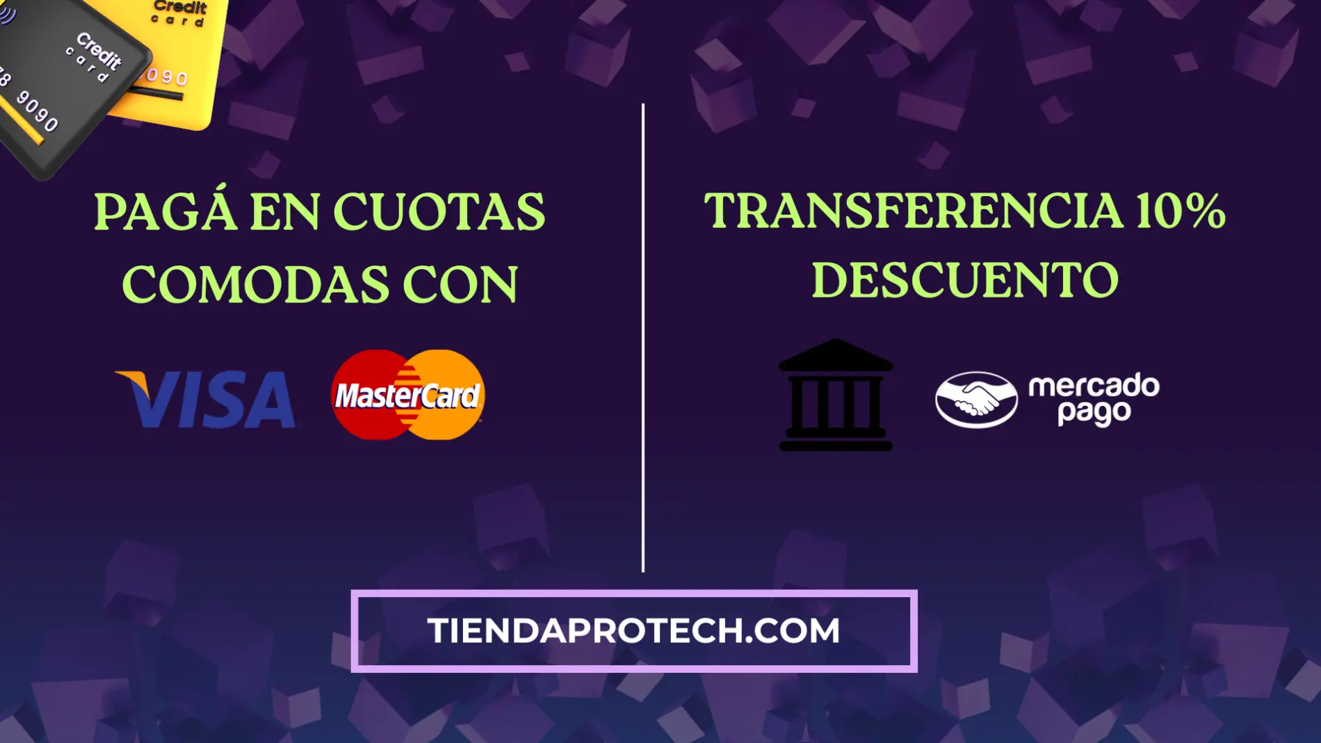 En PROTECH, nos importa que puedas disfrutar de tus compras con la mayor comodidad y tranquilidad. Por eso, te ofrecemos opciones de pago flexibles y seguras que se adaptan a vos: